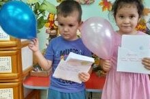 Кечкенәләр төркеме балалары Аделина белән Ренальне туган көннәре белән котладылар һәм узләре ясаган рәсемнәрен бүләк иттеләр.