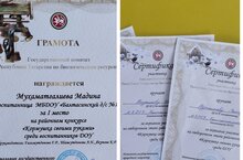 Кече яшьтәгеләр төркемендә тәрбияләнүче, Мөхәмәтгалиева Мәдинә "җимлекләр ' бәйгесендә 1 урынга лаек булды.