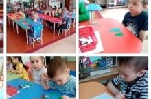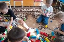 Кечкенәләр төркеме балалары төзү материалларыннан төрле корылмалар төзергә яраталар. Бүген, алар үзләренең яраткан машиналарына, гараж төзеделәр. Машиналарның размерына туры китереп стена, капка ясадылар.