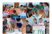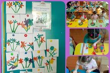Бүген без балалар белән әниләргә бүләккә чәчәкләр бәйләме кисеп ябыштырдык.