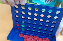 Новая игра "Пятнашки в ряд" стала самой любимой игрой детей.Кто соберет 4 фишки одного цвета в линию,кидая их в решетку-тот победитель.Но, в тоже время надо следить за тем,чтобы соперник не опередил тебя,создавая препятствия его линиям.