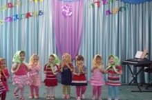 Музыка шөгылендә 1 нче кечкенәләр төркеме кызлары "Без матрёшкалар" дигән җырлы-бию өйрәнәләр.