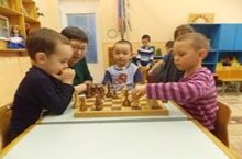 Шахмат секциясенә йөрүче балалар бакча эчендә яшьтәшләренә шахмат уены серләрен ачалар.