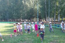 Зурлар төркеме балалары "Сәламәтлек атналыгы"н ял паркында эстафета уеннары уйнап башлап җибәрделәр./Дети старшей группы положили начало "Недели здоровья", играя в игры-эстафеты в парке отдыха. 13.08.2025