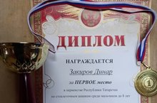 Мәктәпкә әзерлек төркеменә йөрүче Закиров Динар 8 яшькә кадәрге малайлар арасында 100 шакмаклы шашка буенча Татарстан беренчелегендә беренче урынны яулады.