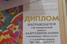 Воспитанник старшей группы Бадрутдинов Дамин награжден дипломом "За творческий поиск" в номинации вокал -соло.