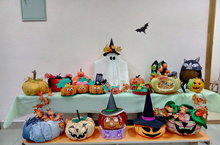 Средняя группа организовала выставку "Веселая тыква" на праздник "Хеллоуин".