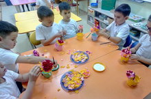 Мәктәпкә әзерлек төркеме балалары кадерле әниләренә бәйрәм бүләге ясыйлар.