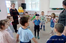 Дети средней группы разучивают игру "Тубетей".