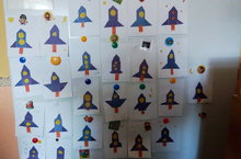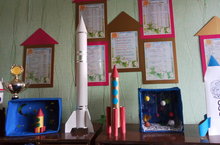 Младшая группа организовала выставку поделок "На просторах космоса".