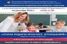 14 декабря 2018 года с 16.00-17.30 состоится Республиканское родительское интернет-собрание, с участием Министра образования и науки РТ Бурганова Р.Т. на тему "Этика педагогических отношений"