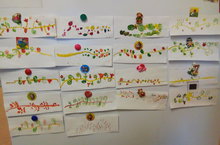 Кечкенәләр төркеме балалары кыярлар һәм помидорлар кисеп ябыштырдылар. Дети младшей группы из цветной бумаги вырезали огурцы и помидоры.