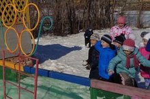 Дети тренируются в попадании снежков в определенную цель.Прогулки на свежем воздухе – залог здоровья ребенка, его бодрости и активности. -