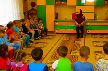 Бүген балалар бакчасына мәчеттән Фазылҗанова Фирая Яхиевна кунакка килде. Ул балаларны корбан бәйрәме белән котлап, гает күчтәнәчләре таратты.