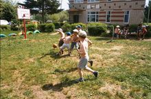 Бакчабызның спорт мәйданчыгына футбол капкалары алып урнаштырдык. Малайларның сөенече зур: алар хәзер рәхәтләнеп туп тибәләр. Кем белә, бәлки араларыннан киләчәктә танылган футболистлар чыгар. Бүгенгә әле алар җитезлектә үзара көч сынашалар.