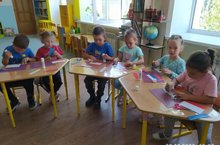 Кечкенәләр төркемендә "Зур һәм кечкенә алмалар" темасына кисеп ябыштыру шөгыле