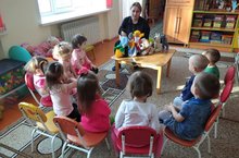 Икенче кечкенәләр төркеме балалары "Шалкан" әкиятен яратып тыңлыйлар.Дети второй группы раннего возраста с удовольствием слушают сказку "Репка". 03.02.2021