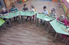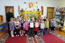 Уртанчылар төркеме балалары юл хәрәкәте кагыйдәләрен, юл билгеләрен бик теләп өйрәнәләр./Дети средней группы закрепляют знание дорожных знаков и правил поведения на дороге.
