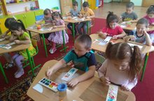 Детей встречали сотрудники детского сада, переодетые в персонажи разных сказок, была организована выставка поздравительных открыток, сделанных детьми совместно с родителями.Балаларны әкият геройлары булып киенгән тәрбиячеләр каршы алды, әти-әниләр белән берлектә ясалган котлау открыткалар күргәзмәсе оештырылды.