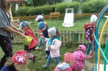 С детьми средней группы была проведена уборка на игровой площадке. При дальнейшем посещении участка дети обещали поддерживать её в чистоте