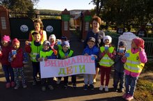 В целях активизации работы по предупреждению детского дорожно-транспортного травматизма и предупреждения дорожно-транспортных происшествий наш детский сад провел акцию "Внимание!Дети" совместно с начальником отделения в Балтасинском районе территориального управления г. Казани ГБУ «Безопасность дорожного движения» Лилией Хадиевой/ Дети раздавали буклеты, в которых призывали водителей быть внимательными на дороге, детей перевозить в специальных детских удерживающих устройствах, пристегиваться ремнями безопасности, пропускать пешеходов на пешеходном переходе.