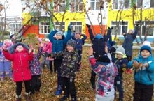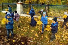 Кул эшләре өчен мәктәпкә әзерлек төркеме балалары яфраклар җыя