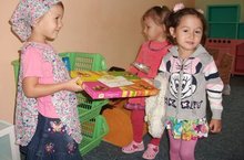 Икенче кечкенәләр төркеме балалары "Кибеттә" сюжетлы-рольле уенын яратып уйныйлар. Балалар диалогик сөйләмгә, итагатьле итеп аралашуга өйрәнәләр.