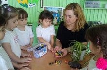 Эко-школы/Зеленый флаг программасы буенча даими эшлибез.Уртанчылар төркемендә балалар белән ташландык батареялар турында әңгәмә.