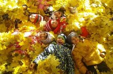 Бүген балалар көзге бизәкләр белән якыннан танышу максатыннан, табигать кочагында ял итте. Сабыйлар рәхәтләнеп матур-матур яфраклар җыйды, "сары" диңгездә йөзеп уйнады