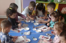Икенче кечкенәләр төркеме балаларының әниләрен ярату хисләрен белдереп ябыштыру эшчәнлегендә эшләнгән күмәк эше.