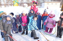 Физик тэрбия житэкчесе Муллагалиева М.М. 1 нче кечкенэлэр торкемендэ”Кар бабай бездэ кунакта” дип исемлэнгэн кунел ачу кичэсе уткэрде.