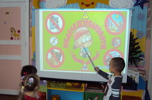 Балаларга куркынычсызлык кагыйдәләрен өйрәтүдә яңа технологияләр кулланып эшләү яхшы нәтиҗәләр бирә. Сыйфатлы, ачык итеп эшләнгән рәсемнәр баланың игътибарын җәлеп итә, бирелгән мәгълүматны истә калдырырга ярдәм итә. Икенче кечкенәләр төркемендә “Сак булыгыз!” дип исемләнгән танып белү эшчәнлегендә балалар әйләнә - тирәлектә бала тормышы өчен куркыныч булган әйберләр белән таныштылар.
