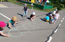 Бүген икенче кече яшьтәгеләр төркеме балалары белән "кырыкаякка" аяклар ясадык, кояш нурларында сикереп уйнадык. Көнебез күңелле үтте.