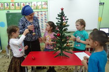 Зурлар төркеме тәрбиячесе Эльвира Садиковна “Зима – зимушка”- проектын тәмамлап “Чыршы бизибез” – темасын үзенчәлекле итеп уздырды. Балалар тәрбияченең алдан әзерләнгән сорауларына җавап бирә- бирә чыршы бизәделәр. Сораулар бик кызыксындыручан һәм логик – фикерләү сәләтен үстерү өстендә эшләү өчен, зурлар белән бала арасында диолог булдыру, бер –берең белән фикерләшү сәләтен үстерү өстендә эш алып баруны да максат итеп куйган.