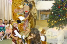 Зурлар төреме балалары бәйрәмгә "снеговиклар" булып киенеп килделәр. Алар килгән кунакларга үзләренең матур җырларын, шигырьләрен, биюләрен бүләк итеп, яңа ел белән котладылар.