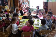 “Яңа ел иртәләре узганнан соң балаларда ниндидер моңсулык чагылды “- ди мәктәпкә хәзерлек төркеме тәрбиячесе Эльвира Садиковна. Яңа елны каршылап бу төркем тәрбиячеләре мәктәпкә хәзерлек төркеме балаларына “Чыршыкай” дип исемләнгән “Кафеда” төшке аш оештырды.Әкрен генә яңгыраган көй астында балалар рәхәтләнеп гәпләшеп ял иттеләр. Балалар “кафеда” үзләрен бик тыйнак тоттылар. Өстәл янында, тукланган вакытта чапылдатмыйча ашау, чәнечкене, кашыкны дөрес тоту, 1нче ашамлык (блюдо), 2нче ашамлык (блюдо), салатны беренче ашап кую, өстәл янында үзеңне культуралы тоту күнекмәләренә бик нык игътибар иттеләр. Балалар бу гадәти булмаган төшке ашны оештырудан бик кәнагать калдылар.