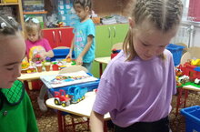 Уртанчылар төркемендә малайларның яраткан уены төзү. Алар йортлар, самолетлар, ракета, көймә, манаралар төзеп уйныйлар . Ә бүген Рамазан, Ризат, Сәмир мотоцикл төзеделәр һәм иптәшләрен утыртып йөрттеләр./ Строительство любимая игра мальчиков в средней группе. Они играют, строя дома, самолеты, ракеты, лодки, башни . А сегодня Рамазан, Ризат, Самир построили мотоцикл.