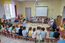 Буген бездә зурлар төркеме балалары кунакта булды. Алар кечкенә дусларына үзләре турында сөйләделәр, ничек матур итеп шигырь сөйләргә кирәклеген аңлаттылар. Кечкенәләр үз чиратында кунакларга үзләре ясаган бүләкләрен бирделәр. Очрашудан барыбыз да кәнәгать калдык һәм үзебез дә кунакка килербез дип саубуллаштык./ Сегодня у нас в гостях дети старшей группы. Они рассказывали своим маленьким друзьям о себе, объяснив, как надо красиво прочитать стихи. Их друзья, в свою очередь, подарили гостям подарки собственного изготовления. Мы остались довольны встречей и попрощались, что сами приедем в гости.