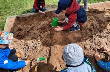 Балаларның фантазиясе бик бай, ниләр генә уйлап чыгармыйлар да, нинди һөнәр ияләре итеп кенә узләрен хис итмиләр. Бүген комлыктагы уен нәкъ менә шундыйлардан булды. / Детская фантазия очень богата, что только не выдумывают, какими профессиями себя не чувствуют. Именно такой была сегодня игра в песочнице.