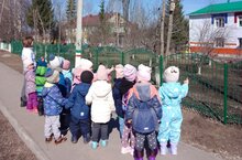 Кечкенәләр төркеме балалары, саф һавада йөргәндә, балалар бакчасы территориясендәге сыерчые оясында урнашкан сыерчыкны күзәттеләр. Күзәтү барышында, балалар, кыш көне сыерчыкларның җылы якларда яшәвен, анда күбәләкләр, чебеннәр һәм башка ризыклар күп булуын, ә кояш җылыткач, безгә очып килүләрен исләренә төшерделәр./Дети младшей группы на прогулке наблюдали за скворцом, который поселился в скворечнике на территории детского сада. В ходе наблюдения ребята узнали, что зимой скворцы живут в тёплых краях, где много мух, комаров и другой еды, а как только пригреет солнышко – прилетают к нам.