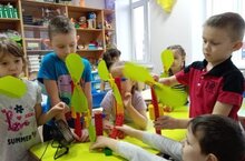 Мәктәпкә әзерлек төркеме балалары мөстәкыйль рәвештә инструкциягә таянып LEDO – конструктор аша төрле модель “Бөтәргеч” конструкцияләделәр.Аннары һәр бөтәргечнең нинди ераклыкта әйләнә башлаячагын ачыклау өчен тәҗрибә үткәрделәр .Балалар җилнең көче бөтәргечкә тәэсир итә дигән нәтиҗәгә килделәр, шул ук вакытта җил үз энергиясен биреп әйләндерә һәм бөтәргеч әйләнә башлый./ Дети подготовительной к школе группы самостоятельно конструировали вертушку с опорой на инструкцию. Затем провели опыт, чтобы установить , на каком расстоянии от вентилятора начнет вращаться каждая вертушка .Дети пришли к выводу , что сила ветра воздействует на лопасти вертушки, при этом ветер передает свою энергию вертушке, и она начинает вращаться.