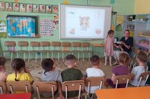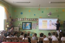 Бакчабызның мәктәпкә әзерлек төркеме балалары Балтач үзәк китапханәсенең балалар бүлегендә "Тамчыкай белән очрашу " дигән кичәгә бардылар /Дети подготовительной группы встретились с "Капелькой" в Балтасинской центральной детской библиотеке.