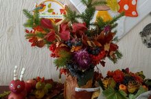 Көз табигатьнең иң матур, бай вакыты. 2 нче кече яшьтәге балалар төркемендә без әти-әниләр белән көзге уңышлардан күргәзмә оештырдык. Барлык әти-әниләребез актив катнаштылар. /Золотая осень, какая чудесная и прекрасная пора. Мы с родителями организовали конкурс-выставку осенних поделок на тему « Осенние фантазии». На выставке были представлены очень красивые поделки из овощей, фруктов, листьев, ягод.