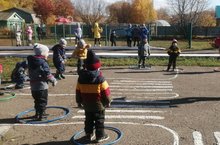 Балаларны кече яшьтән үк саф һавада чыныктырабыз.Балалар тәрбияче белән җиңелчә йөгерергә,сикерергә,әкият геройлары ярдәмендә төрле хәрәкәтләр эшлэргэ өйрәнәләр. Сәламәтлеклэрен ,алдагы эшчэнлеклэрдэ алган белемнэрен ныгыталар, игътибарлылыкны үстерәләр. /Закаливаем детей на свежем воздухе. Детей младшей группы вместе с воспитателем учатся медленному бегу и прыжкам; формировать умение выполнять упражнения вместе героями сказки, развивают внимание.