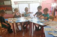 Кечкенәләр төркемендә кисеп ябыштыру эшчәнлегендә балалар бүген куянга ярдәм итеп , тәлинкәгә алмалар ябыштырдылар. Балалар пумала һәм җилем белән эшләу кунекмэсен ныгыттылар ,әйберләрнең формасын, төсен,кәгазь битендә рәсемне урнаштырырга өйрәнделәр./Дети младшей группы закрепляют знания о форме и цвете предметов, упражняются в аккуратном пользовании клеем, применении салфеточки для аккуратного наклеивания, учатся свободно, располагать изображения на бумаге. Развивают умения вместе радоваться успехам, помогать другим.