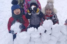 Уртанчылар төркеме балалары карлар эреп беткәнче кардан корылмалар ясап уйнадылар. / Строительство из снега позволяет решать не только задачу декорирования окружающего пространство, но и много других образовательных и воспитательных задач, А чтобы постройки из снега еще больше привлекали внимание детей их лучше делать сюжетными.