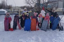 Мәктәпкә әзерлек төркеме тәрбиячеләре балалар белән саф һавада спорт уеннары уздырдылыр./Воспитатели подготовительной группы провели на улице спортивные игры.Дети состязались в метании,мальчики катали девочек на салазках и в конце обе команды построили башню.