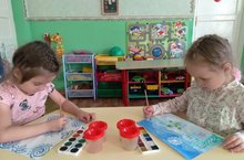 Беренче кече яшьтәге балалар төркемендә рәсем эшчәнлеге .Балалар бик кызыксынып мамыклы таякчык белән болыттан кар яудырдылар. Эшчәнлекнең максаты:Кыш фасылы белән таныштыруны дәвам итү, зәнгәр төсне ныгыту,төртеп алу ысулы белән түгәрәкләр(кәгаз битендә карлар) ясарга өйрәтү./ Малыши с большим интересом с ватными палочками рисовали снег.