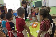Кечкенәләр төркеме тәрбиячесе Ахатова Р.К “Шикәр комы” темасы буенча тәрбиячеләргә ачык эшчәнлек үткәрде. Балалар белән шикәр чөгендеренең ничек үсүен өйрәнделәр һәм шикәр комының төсен , тәмен , таралучанлыгын тәҗрибәләр аша ныгыттылар.