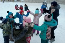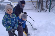 Мәктәпкә әзерлек төркеме малайлары спорт мәйданчыгын кардан чистарталар./Мальчики из подготовительной группы на спортплощадке чистят снег